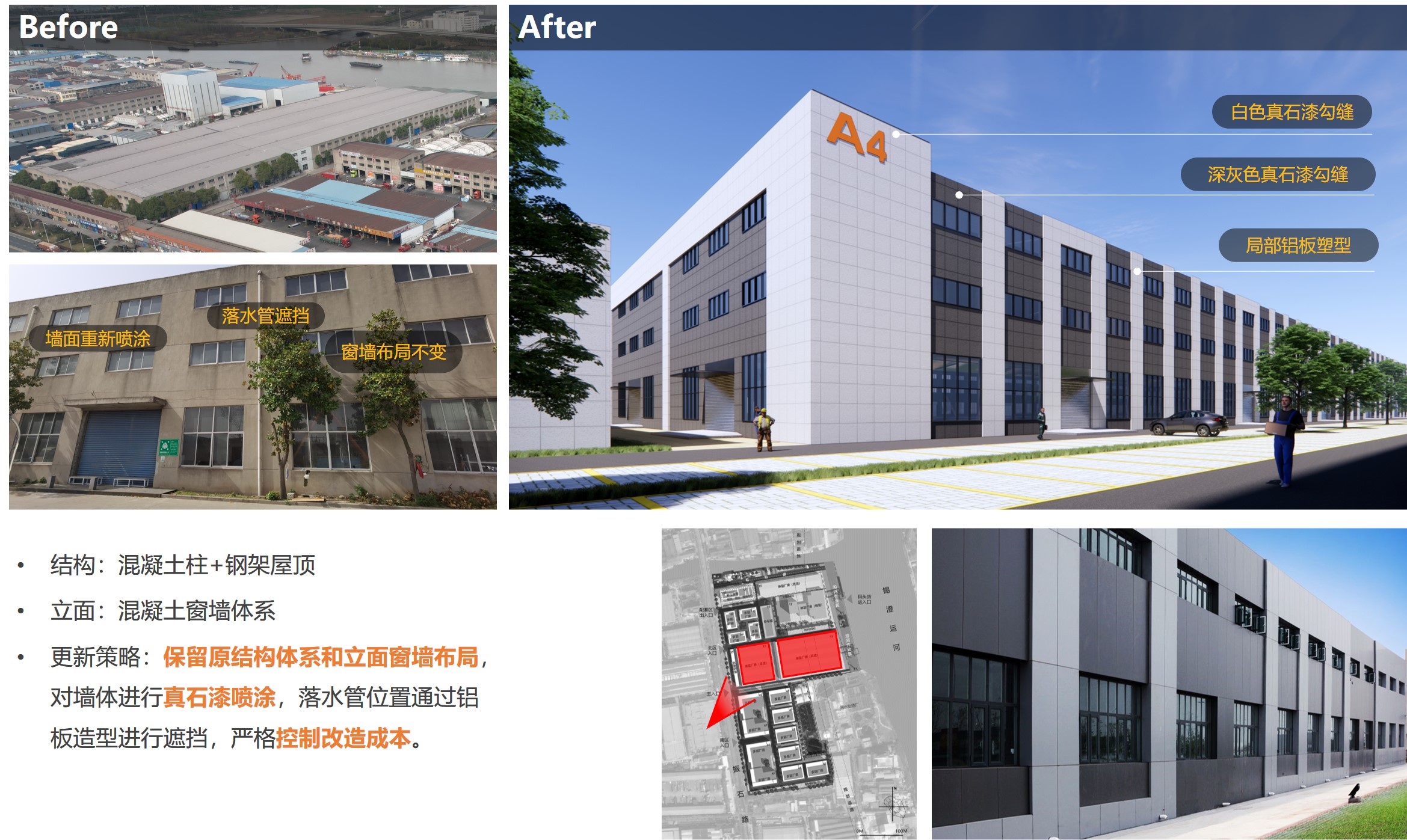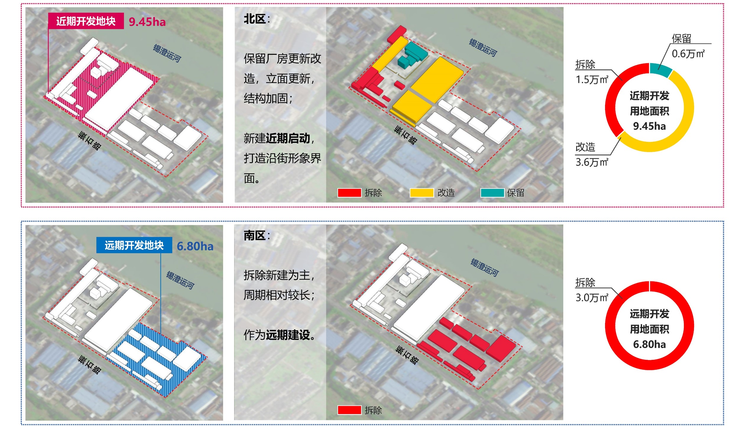 基于现状情况和发展诉求,项目通过背景情况调研,分析区域产业发展和政策导向,提出项目产业及空间发展建议,在此基础上进行深判工作,从项目定位分析和产业类型出发,提出功能产品体系布局建议。同时以定位及产品作为依据,对基地范围内建筑的保留、改造、新建作出分类建议;并将功能产品落入空间方案,植入匹配产业提升发展的载体,完善配套设施,将本项目打造成惠山区产业园更新提升发展的典范。